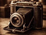 *The photo shows a folding camera, the “MAMIYA 6,” created using image-generating AI.